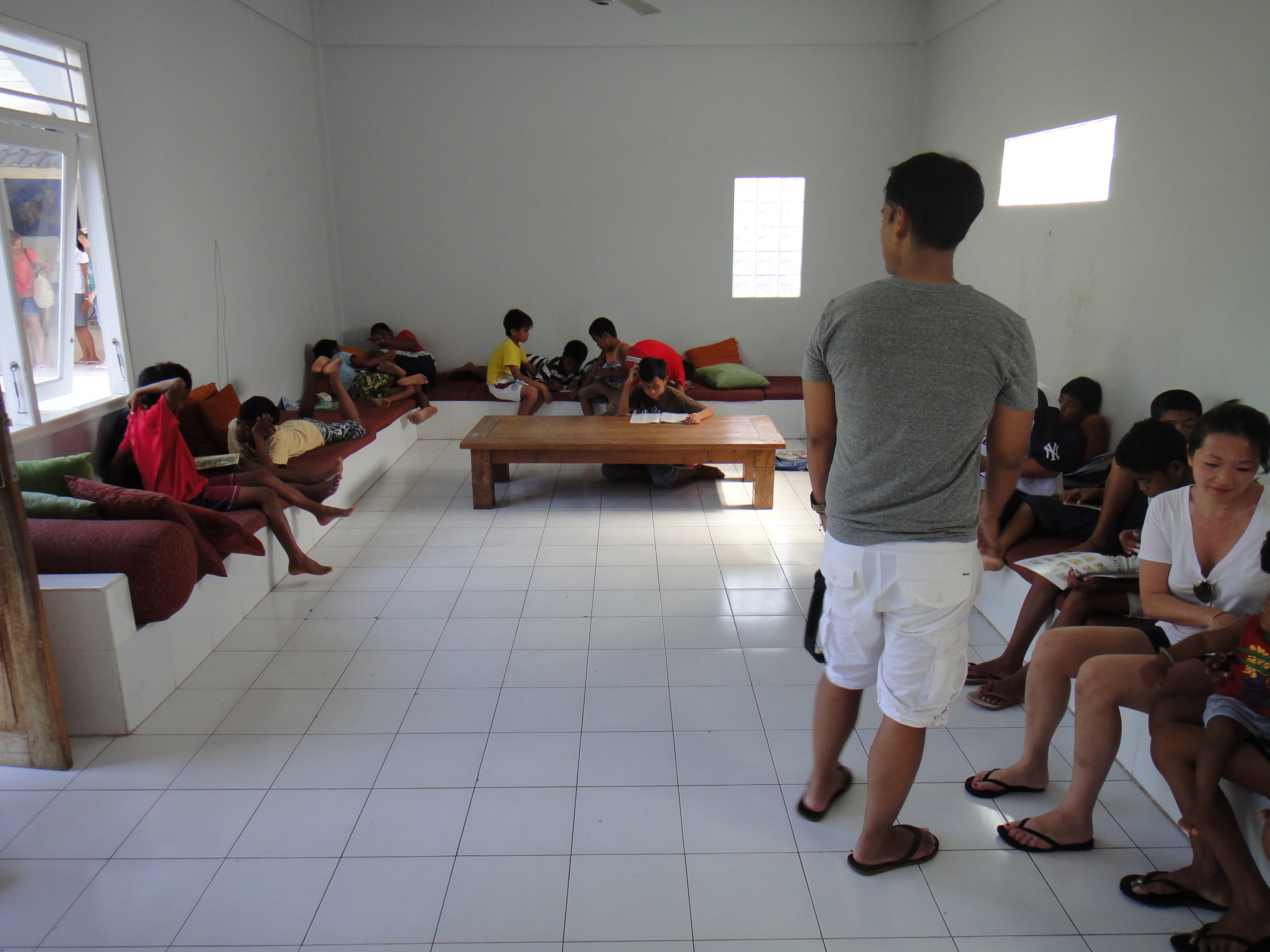 They have a big room with a bookshelf of books, with benches around the sides of the room where they have reading time, and another room with a couple of computers and an art area with easels, paints, etc. I was there during reading time, so spent some time reading English books with the kids. The kids were amazing — all of them smiling and laughing, all coming up and playing with me, having me help them practice English, incredibly polite and well mannered. We were only there for an afternoon, but it was a really incredible experience for me.