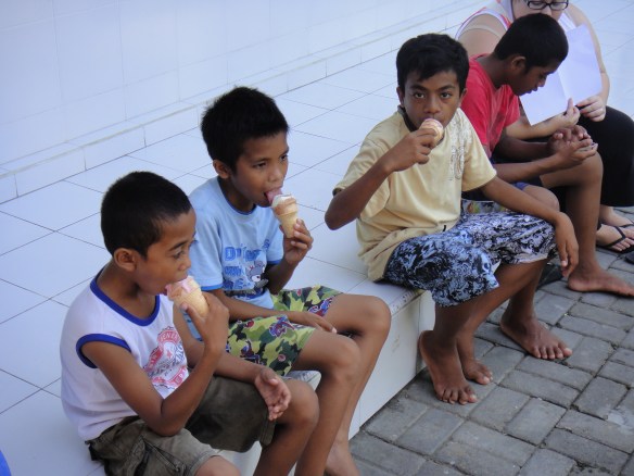 Of the rice, eggs and ice cream that we brought, the kids seemed to like the ice cream the best.