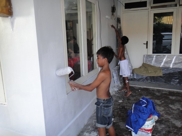 Michelle asked if I’d be willing to go back later in the week to help paint some of the exteriors of the buildings, as they’re in pretty bad need of paint. We returned yesterday with paint brushes and rollers, and spent the afternoon painting the exterior of the main building. A couple of the younger boys helped us paint as well, although by the end of the afternoon they seemed to have almost as much paint in their hair and all over them as what got painted on the walls! But it was another awesome day and so much more rewarding than just another day at the beach or sightseeing.