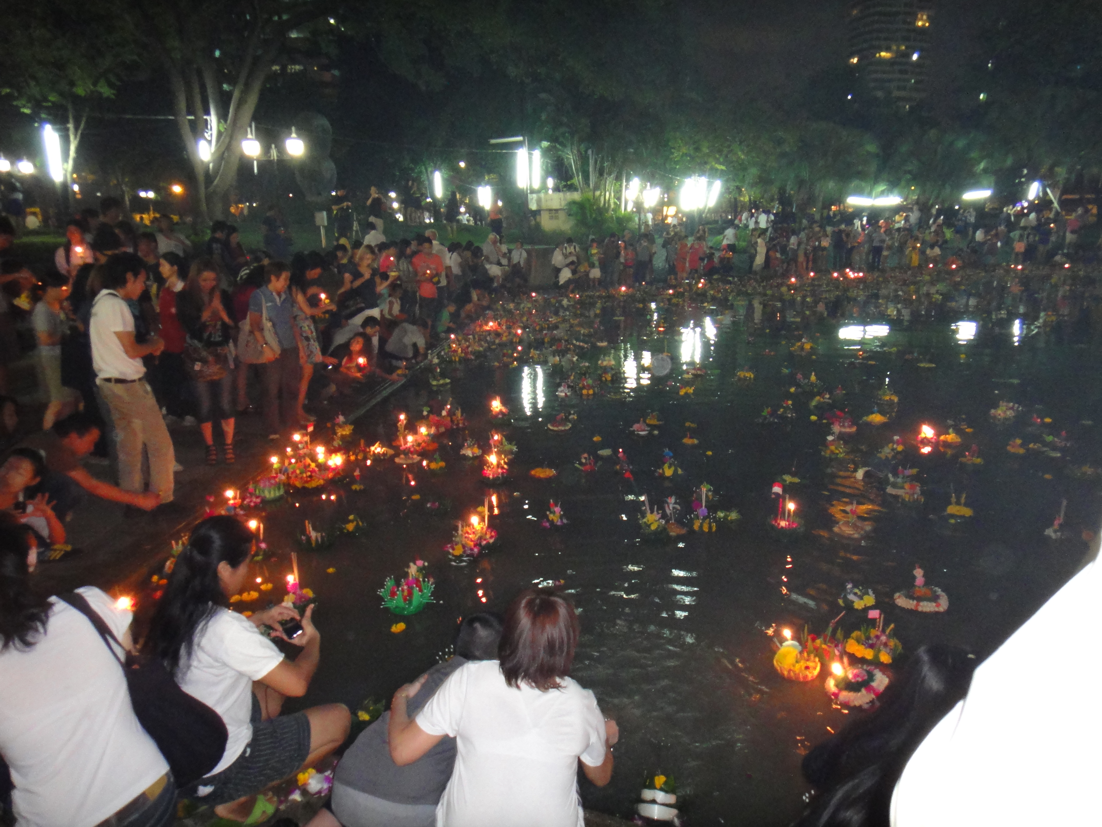 Loy Krathong Published December 11, 2012 at 3648 × 2736 in Loy Krathong and the King’s Birthday Loy Krathongs lit with candles floating on the lake