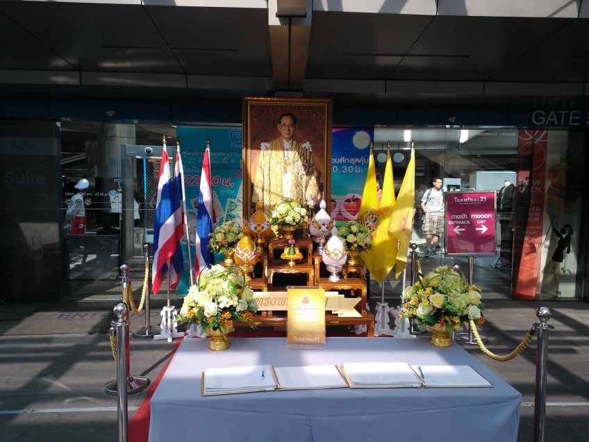 King’s Birthday Published December 11, 2012 at 3264 × 2448 in Loy Krathong and the King’s Birthday Shrine to the King, along with guest books to sign, at a local mall