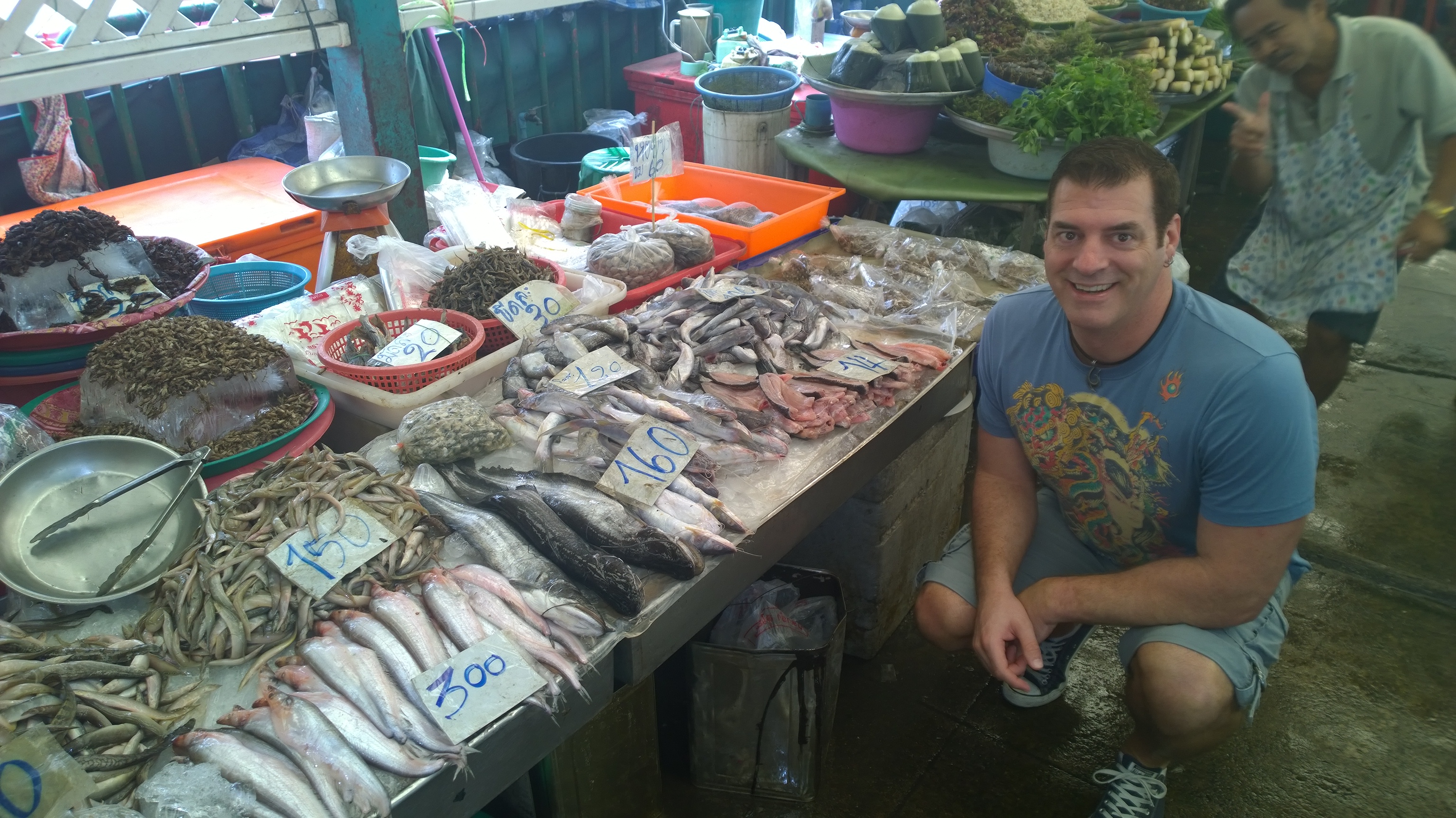 WP_20150124_009 Published May 4, 2015 at 3072 × 1728 in Bangkok Wet Market and “Cooking with Poo”! Me with all that fishy goodness…